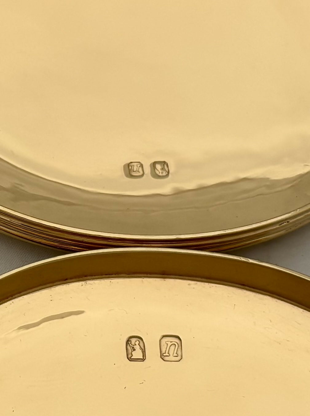 Each box is hallmarked for London 1968 by Collingwood & Co., Conduit Street, Mayfair. Each cover is further part hallmarked.