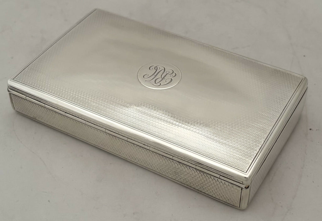 Victorian Silver Table Snuff Box. The gilded interior with a later inscription. The exterior with engine turned detail and monogram on a raised disc.