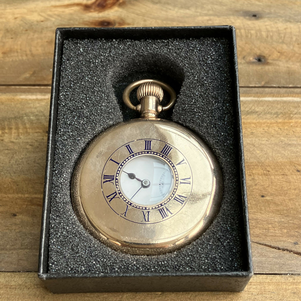 A classic timepiece that exudes vintage charm, this gold-plated pocket watch features a Swiss-made movement and a Dennison case, both renowned for their quality and craftsmanship. Equipped with a stem-winding mechanism, this watch combines elegance with functionality. Its timeless design and enduring materials make it a perfect collectible or a sophisticated accessory for any occasion.