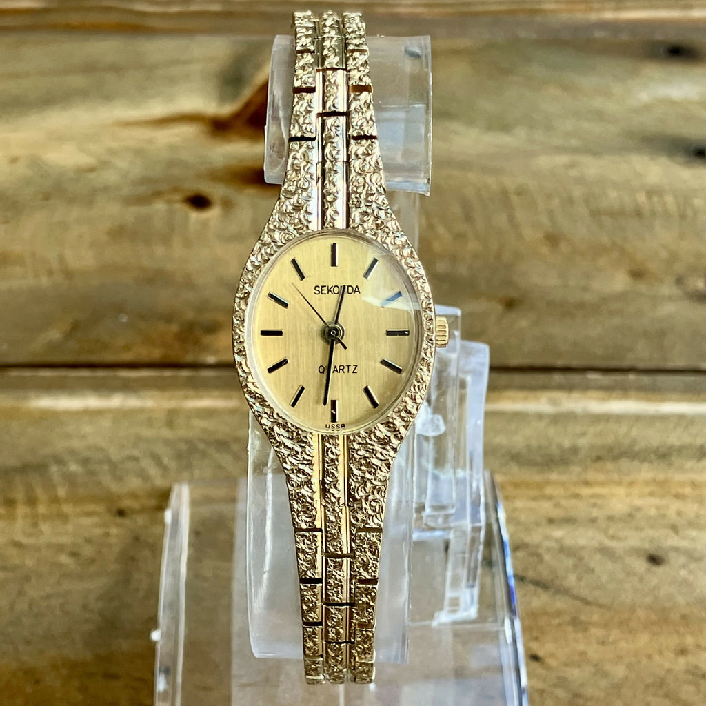 Elegant and timeless, this gold-plated Sekonda cocktail ladies' watch exudes vintage charm.This exquisite timepiece features a delicate design, perfectly suited for formal occasions or everyday elegance.