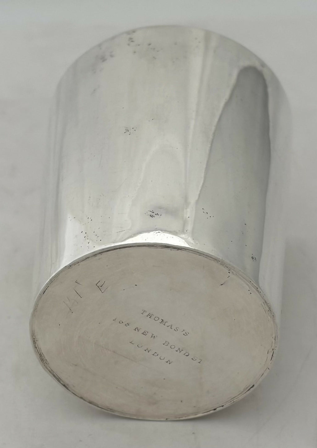 19th Century Silver Plated Beaker. Marked to the underside for Thomas’s, 153 New Bond Street, London. Crested with a bull's head emerging from a coronet.