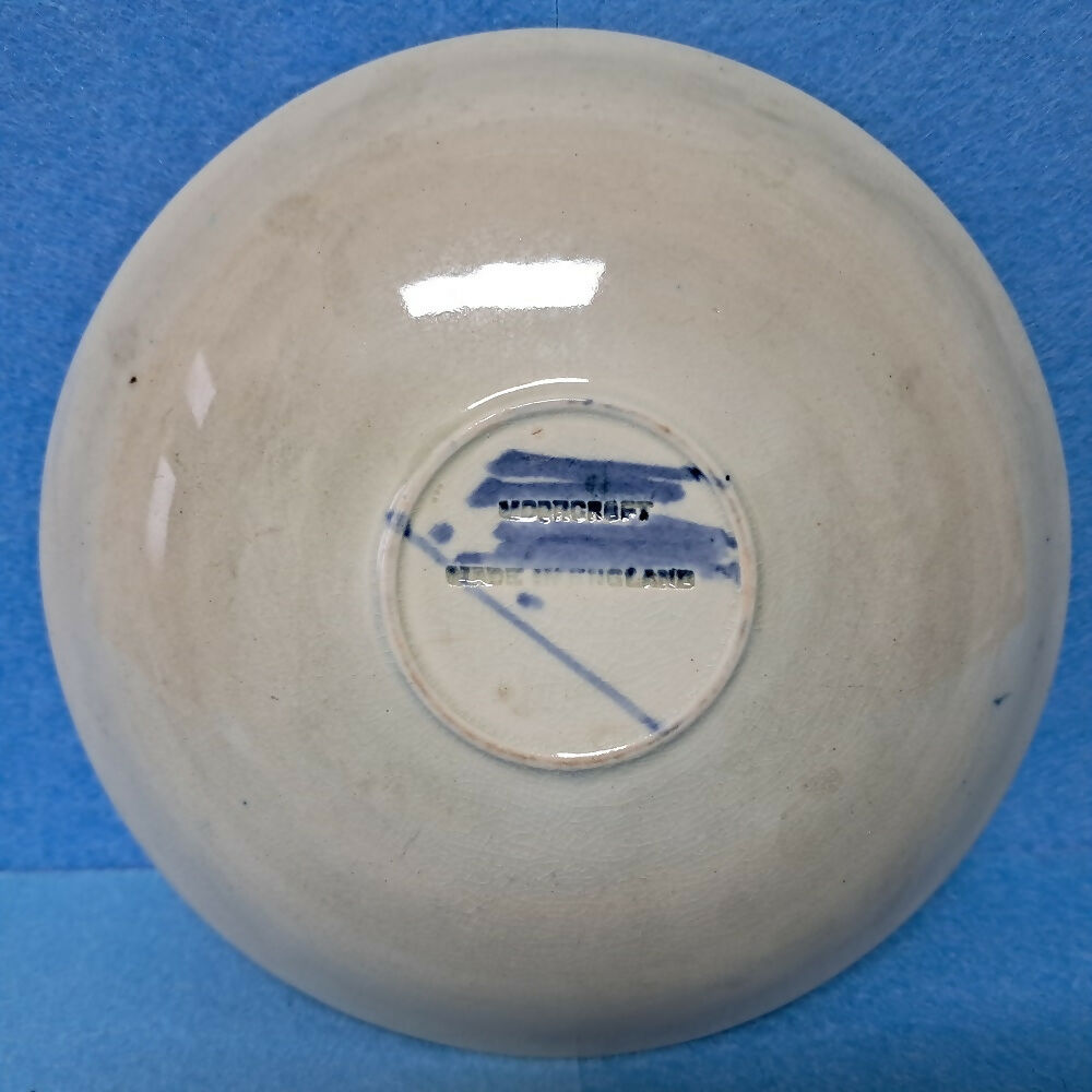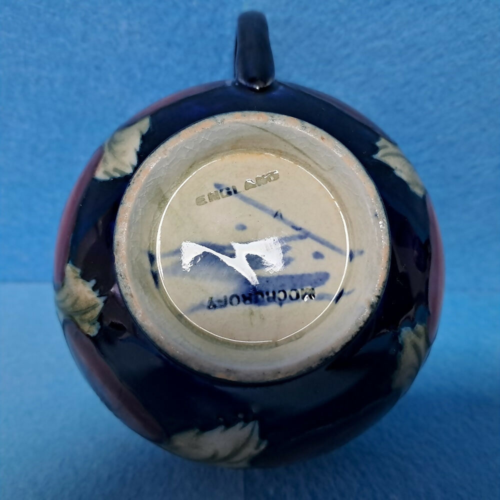 The cup has impressed MOORCROFT and ENGLAND back stamps on the base along with the painted initials in blue. The saucer has impressed MOORCROFT and MADE IN ENGLAND back stamps and also the painted initials in blue. The back stamps suggest these items were produced c1916-1929.