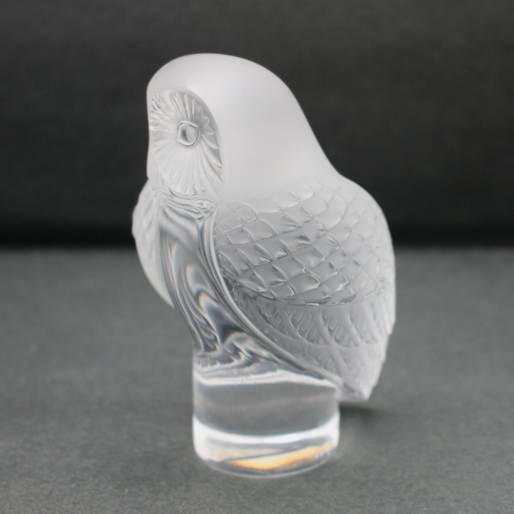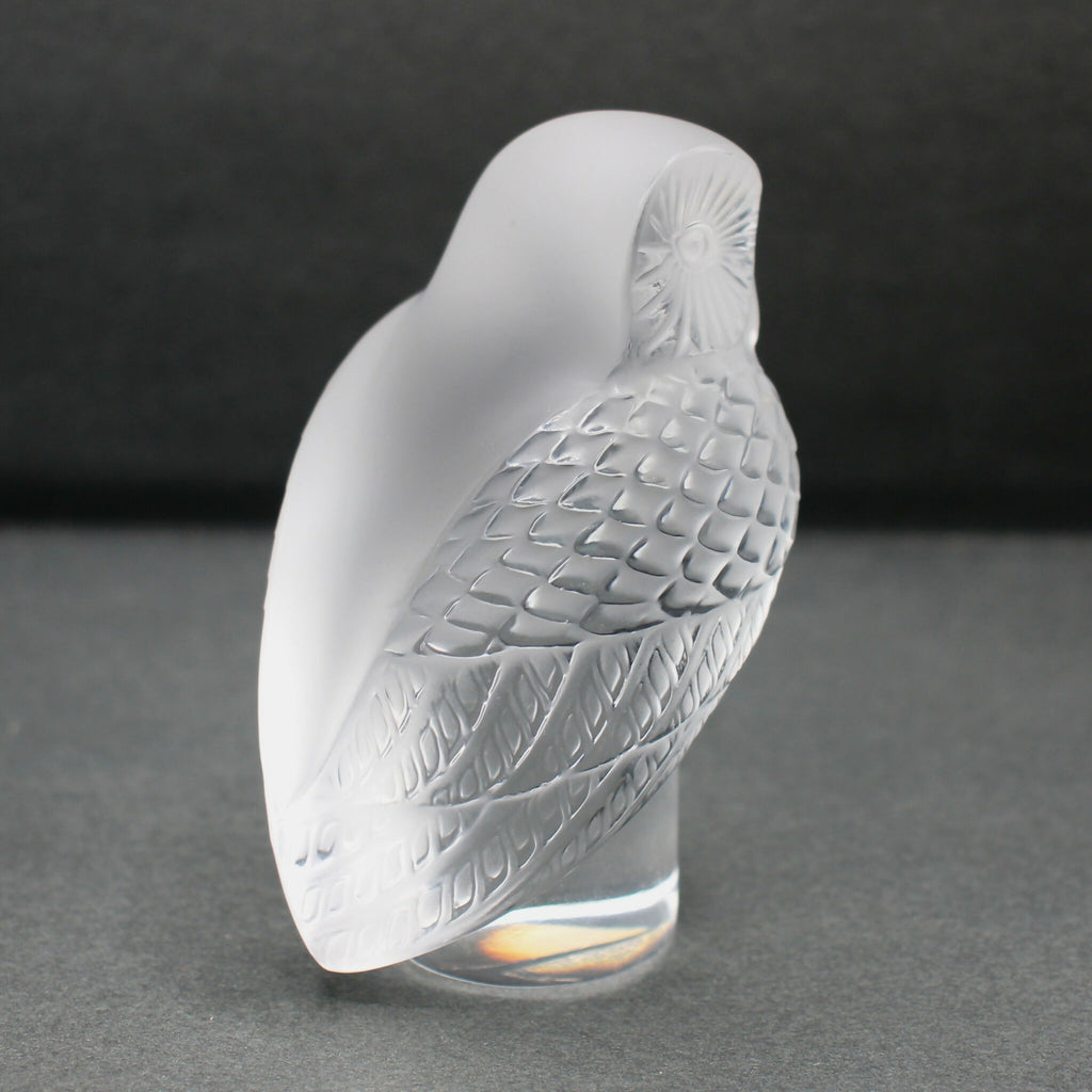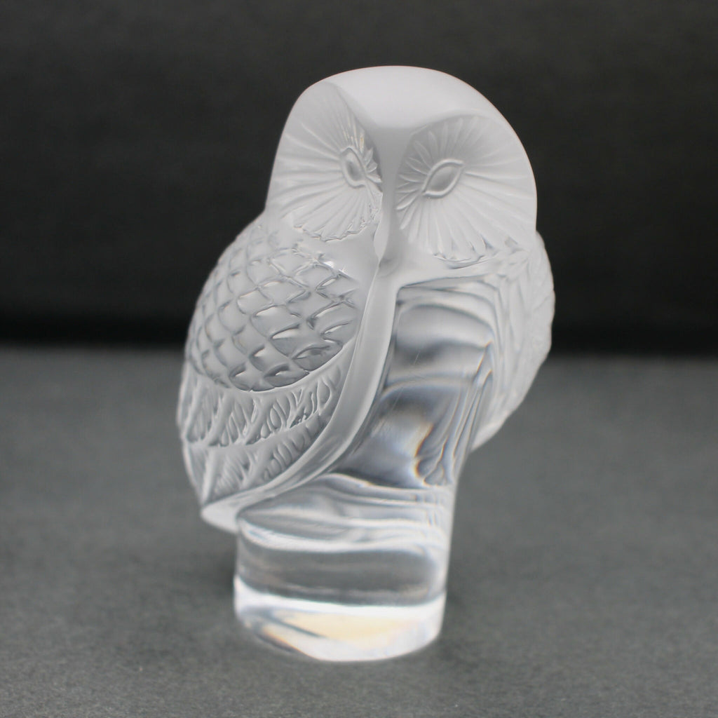 A Lalique paperweight featuring an Owl ("Chouette") sculpture.