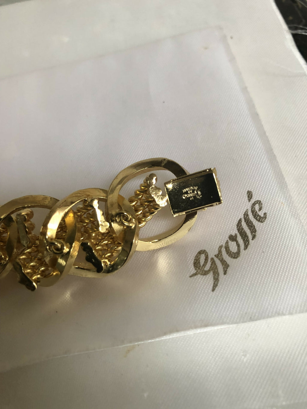 Signed Grosse, the renowned German jewellery house known for its collaboration with Christian Dior, this piece embodies high-end craftsmanship and classic style. The bracelet’s rich gold plating gleams beautifully, making it an ideal statement accessory for both everyday luxe and formal occasions.