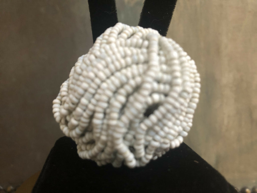 Vintage Christian Dior 1967 White Glass Bead Dome Brooch set in gold gilt metal